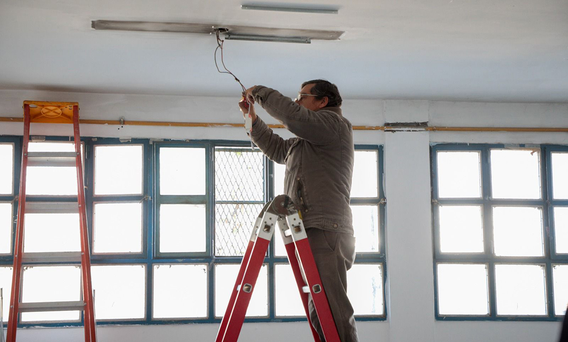 Los trabajos se llevan a cabo durante el receso invernal. Renovación de pisos, mobiliario y tareas de pintura, entre las principales obras. La candidata a concejal, Soledad Peralta recorrió la Escuela N°5 de Villa Rosa.